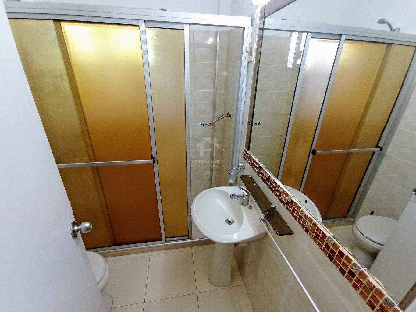 Baño principal completo con mampara en acrílico.